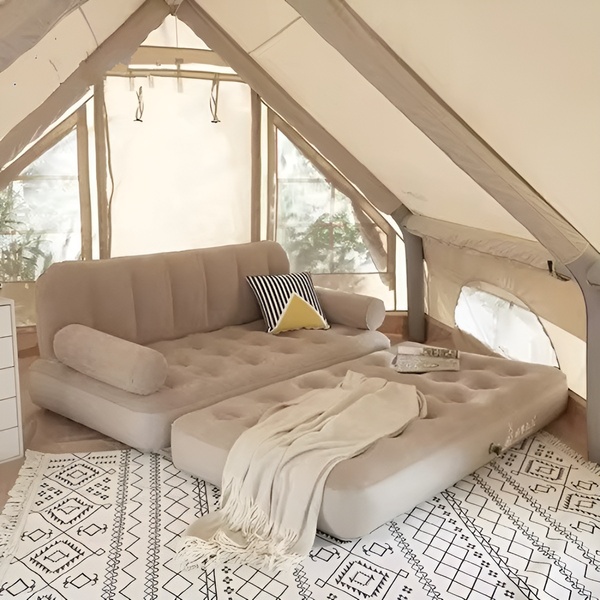 🛏️ Rýchlo a ľahko sa nafúkne na pohodlný spánok a potom sa zloží na pohovku na relaxáciu.