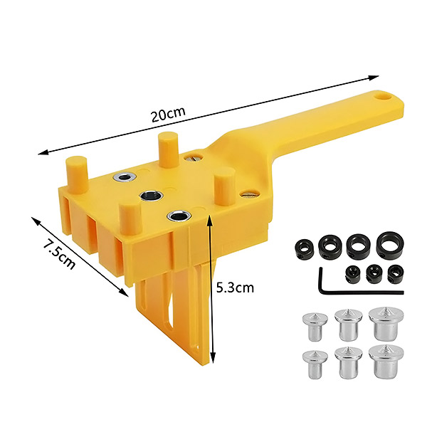 Toto zariadenie podporuje hmoždinky s priemerom 6, 8 a 10 mm a pracuje s drevom a drevotrieskovými doskami s hrúbkou až 30 mm, takže je ideálne na širokú škálu projektov, od skríň až po montáž domáceho nábytku. Jeho ľahká a praktická konštrukcia umožňuje jednoduchú manipuláciu, či už pracujete na stavebných alebo stolárskych úlohách.