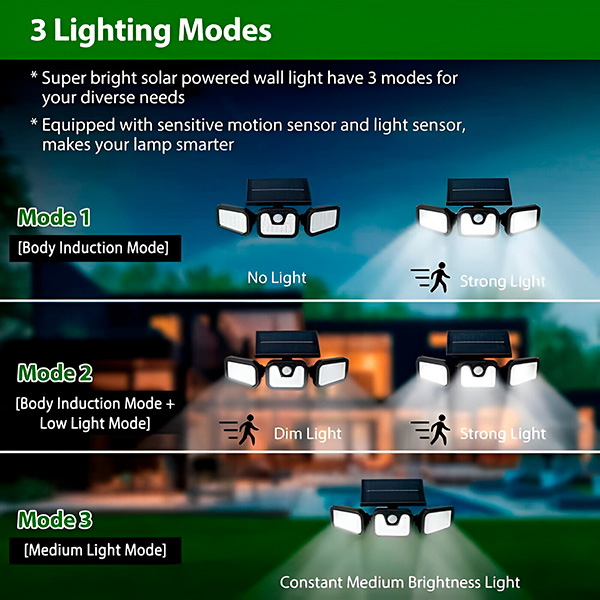 ✅ 3 inteligentné režimy osvetlenia – Vyberte si úroveň jasu, ktorú potrebujete!