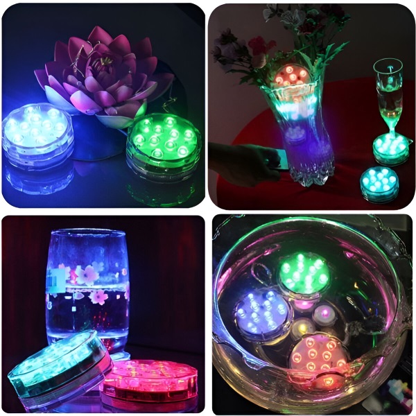 Žiadne zástrčky, žiadne iskry! Vylepšite atmosféru akvária, nádrže na vodu alebo vedierka na ľad. Tieto mini vodné svetlá so žiarivými farbami elegantne skrášlia váš bazén, akvárium, vázu alebo akýkoľvek iný dekor. Či už organizujete večierok, alebo si užívate pokojný večer, tieto všestranné RGB svetlá okamžite pozdvihnú vaše okolie.