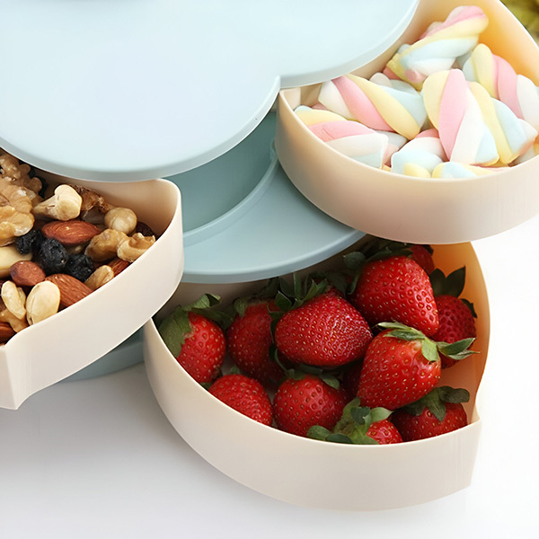 🌟 Pootočením veka odhalíte priehradky ideálne na sušienky, ovocie a iné.