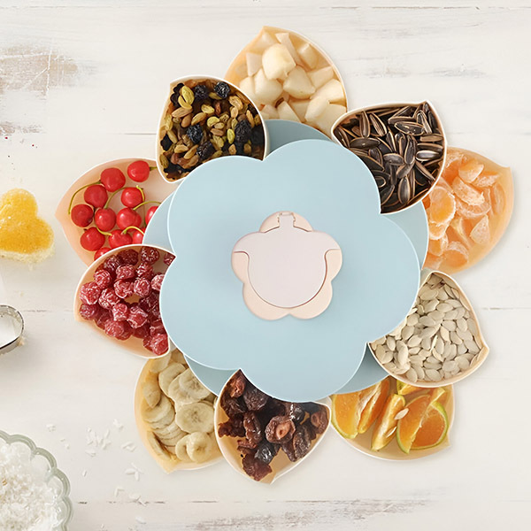 Viacero priehradiek umožňuje uložiť širokú škálu predmetov, od cukríkov, sušienok, sušeného ovocia, olív, kúskov syra a iných pochutín.