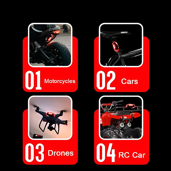 Tieto svetlá sú neuveriteľne univerzálne a sú navrhnuté tak, aby sa hodili do áut, motocyklov, bicyklov aj dronov. Vyberte si medzi metódami inštalácie na suchý zips a gumovým krúžkom pre bezpečné a jednoduché nastavenie. Nie sú potrebné žiadne zložité nástroje ani odborná pomoc.