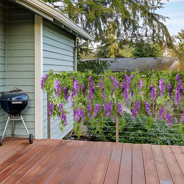 Nemusíte sa zaoberať listami alebo kvetmi, ktoré blednú a vädnú. Naša imitácia vistérie je vyrobená z vysokokvalitného hodvábu a pružného plastu, vďaka čomu si navždy zachová svoju vitalitu. Tieto odolné kvety sú navrhnuté tak, aby vydržali, a poskytujú vám krásne a trvalé dekoračné riešenie.