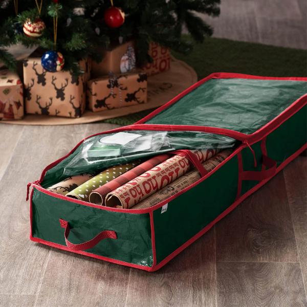 Táto taška s dostatočným priestorom uskladní všetok váš sviatočný baliaci papier a udrží všetko na jednom mieste pre ľahký prístup počas rušných sviatočných dní.